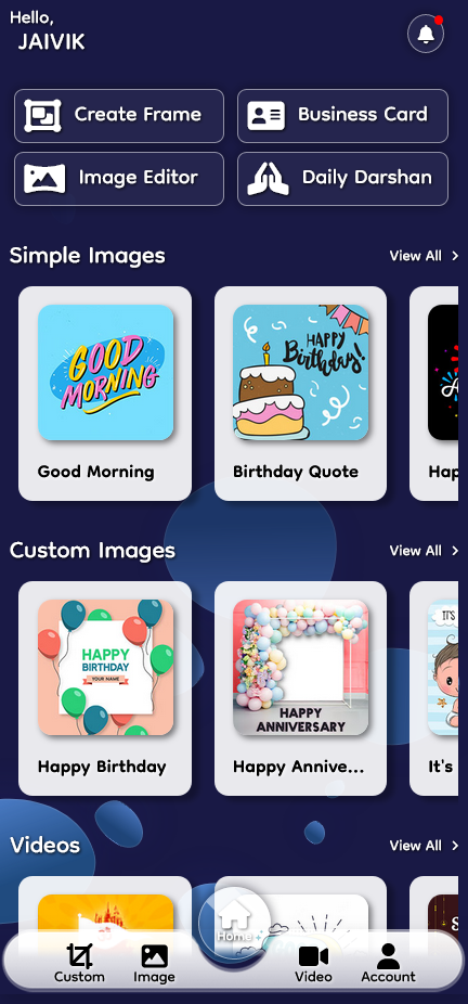 Elevate your video-sharing experience with our extensive video library. Discover a wide range of videos, including good morning wishes, good night messages, birthday celebrations, best wishes for all occasions, motivational content, devotional videos, trending clips, festival highlights, and more. Want to add a personal touch? Incorporate your crafted frames into the videos and download them for sharing.